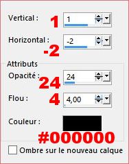 - Effets, Effets 3D, Ombre portée , Idem étape 65 (toujours en mémoire ! )