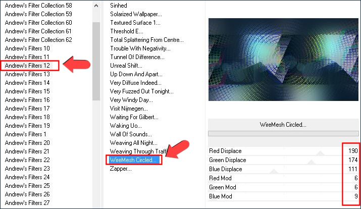 - Effets, Filters Unlimited 2.0, Andrew's Filters 12, WireMesh Circled par défaut