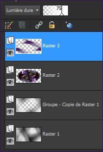 - Palette des claques : Mode Lumière Dure et Opacité à 75 %