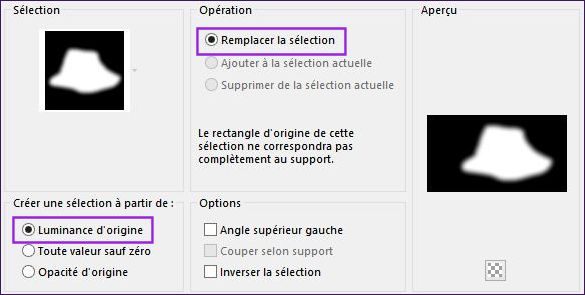 - Sélections, Charger une sélection, Charger la sélection graph-selnoisette02 à partir du disque