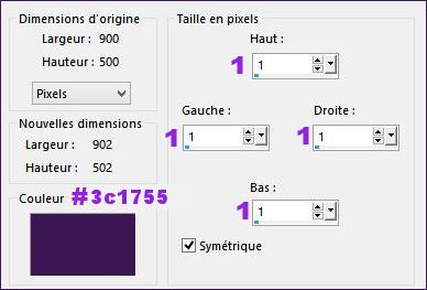- Image, Ajouter des bordures, Symétrique, de 1 pixel, couleur #3c1755