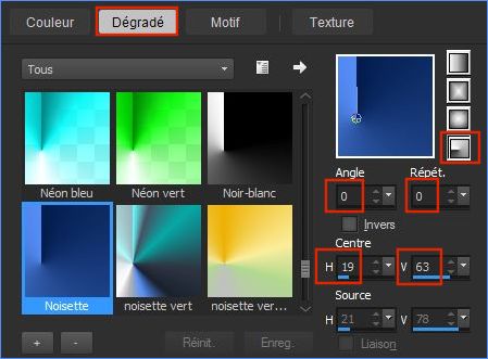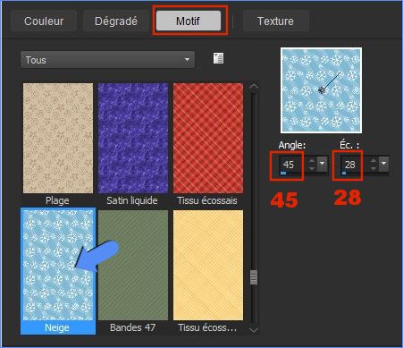 - Dans la fenêtre qui s'ouvre, cliquez sur Motif et sélectionnez le motif Neige (Corel_08_084 )