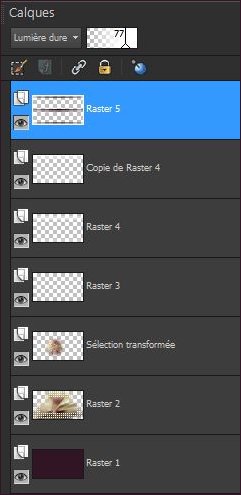 - Palettes des calques : mode Lumière dure et Opacité à 77 %