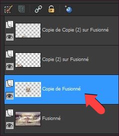 - Se Placez en haut de la pile, sur le calque Copie de Copie(2) sur fusionné