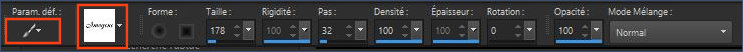 - Sélectionnez le pinceau imogene-texte-noisette, Taille 178, Couleur d'Avant-plan # FFFFFF (clic gauche!)