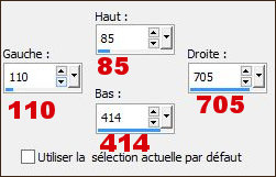 - Cliquez sur le petit carré Sélection personnalisée et appliquez les réglages suivants