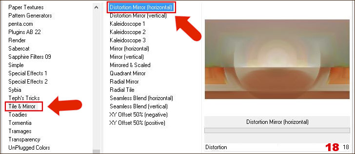 - Effets, Filters Unlimited 2.0, Tiles & Mirror, Distorsion Mirror (horizontal)