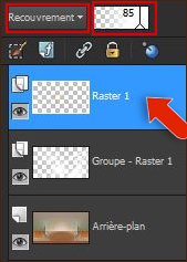 - Palette des calques : Mode Recouvrement et Opacité à 85 %