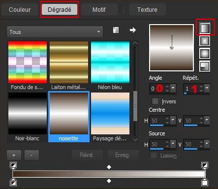 - Préparez un dégradé Linéaire : Avant-plan : #3d2615