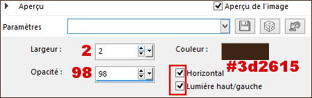 - Image, Ajouter des bordures, symétrique de 7 pixels, couleur Avant-plan : #3d2615