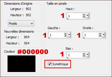 - Image, Ajouter des bordures, Symétrique, de 1 pixel, couleur #000000