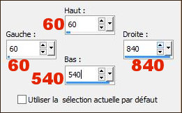 - Cliquez sur le petit carré Sélection personnalisée et entrez les réglages suivants