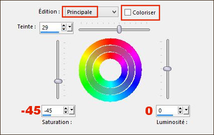 - Réglage, Teinte et saturation, Teinte/Saturation/Luminosité