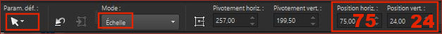 Appliquez les réglages : Position horiz 75 et Position vert 24