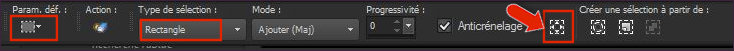 - Cliquez sur le petit carré Sélection personnalisée et appliquez les réglages suivants