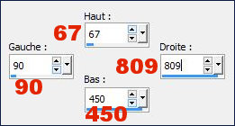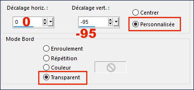 - Outil, Sélectionner (K), Changez les réglages Position horiz. et Position vert. pour les réglages ci-dessous