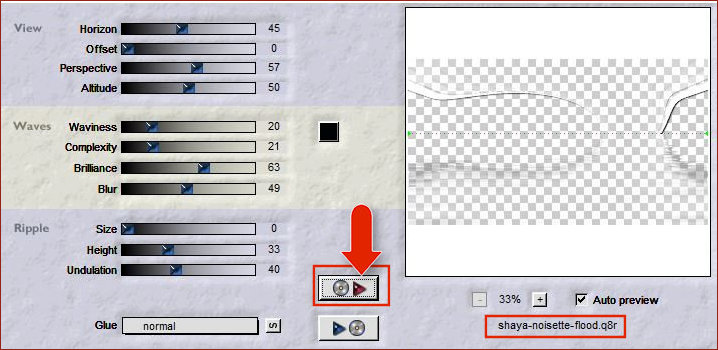 Cliquez sur la petite flèche rouge, dans la fenêtre qui s'ouvre, sélectionnez le dossier dans lequel vous avez placé le preset shaya-noisette-flood.q8r et appliquez ce preset