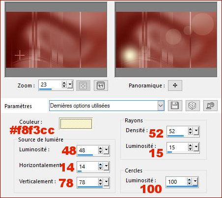 - Double-clic sur le calque Raster 8 ombre : 1 : Mode Mélange : Eclaicir et Opacité à 32 %