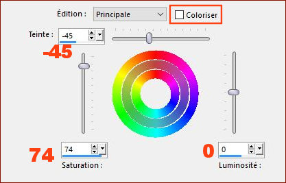 - Réglages, Teinte et saturation, Teinte/Saturation/Luminosité