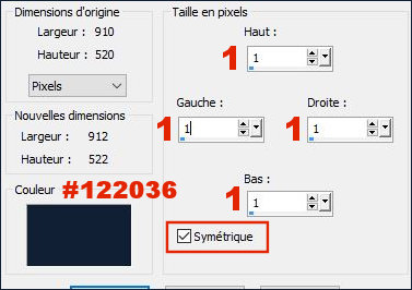 - Image, Ajouter des bordures, Symétrique, de 1 pixel, Couleur #122036