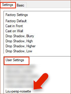 - Effets, Alien Skin Eye Candy 5 : Impact, Perspective Shadow , Sélectionnez le Preset Lou-persp-noisette