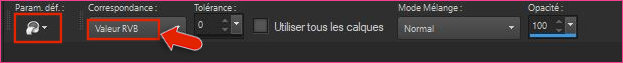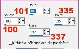 - Cliquez sur le petit carré Sélection personnalisée et appliquez les réglages suivants