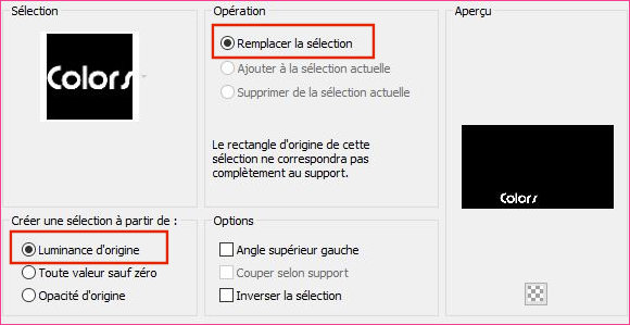 - Sélections, Charger, Charger la sélection colors-selnoisette01 à partir du disque