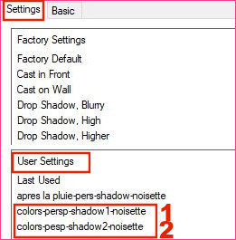 - Effets, Alien Skin Eye Candy 5 : Impact, Perspective Shadow, Sélectionnez le Preset colors-persp-shadow1-noisette
