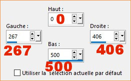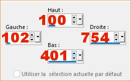 Cliquez sur le petit carré Sélection personnalisée et appliquez les réglages suivants toujours sur le calque Raster 1