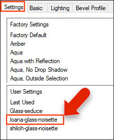 - Effets, Alien Skin Eye Candy 5 : Impact,Glass, sélectionnez le Preset Loana-glass-noisette