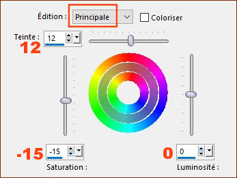 - Réglages, Teinte et saturation, Teinte/Saturation/Luminosité