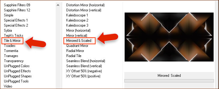 - Effets, Filters Unlimited 2.0, Tile & Mirror, Mirrored & Scaled