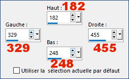 Cliquez sur le petit carré Sélection personnalisée et appliquez les réglages suivants sur le calque Copie de Raster 4
