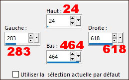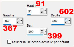 Cliquez sur le petit carré Sélection personnalisée et appliquez les réglages suivants sur le calque Raster 8, en mémoire à l'étape 66 !