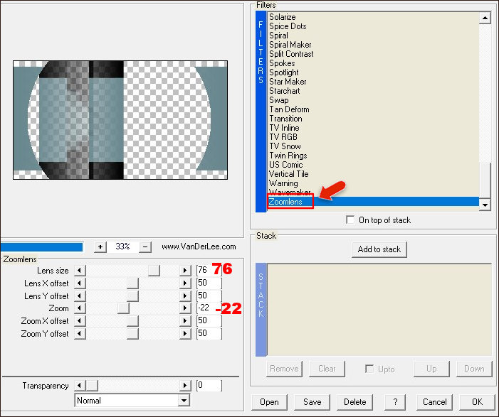 - Effets, VanDerLee, UnPlugged-X : Zoomlens