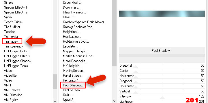 - Effets, Filters Unlimited 2.0, Tramages, Pool Shadow