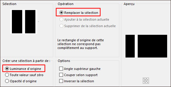 Cliquez sur le petit carré Sélection personnalisée et appliquez les réglages suivants sur le calque Raster 8