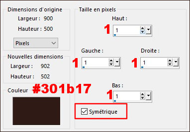 - Image, Ajouter des bordures, Symétrique, de 1 pixel, Couleur #301b17
