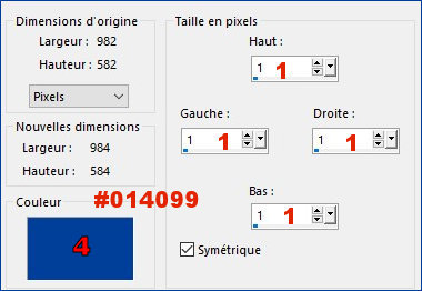 - Image, Ajouter des bordures, Symétrique, de 1 pixel, Couleur #014099