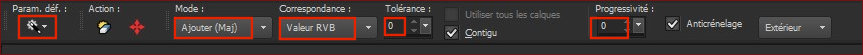 Cliquez sur le petit carré Sélection personnalisée et appliquez les réglages suivants sur le calque Raster 5