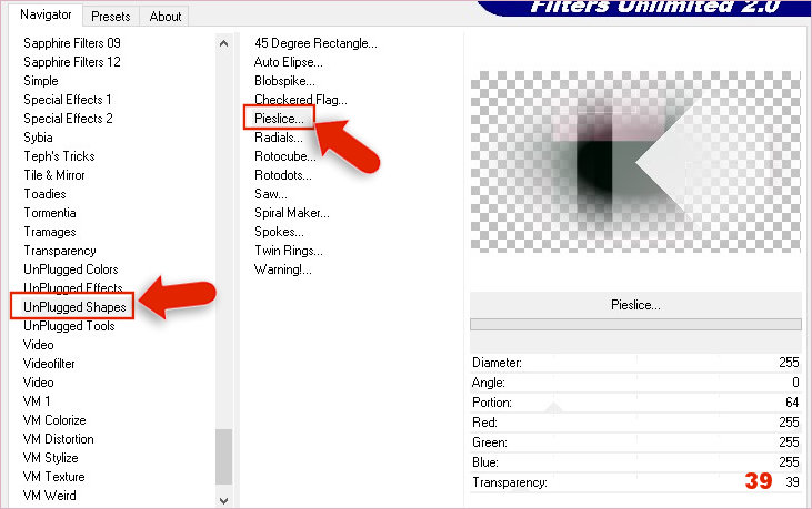 - Effets, UnPlugged Shapes, Pieslice, ( à importer dans Unlimited 2.0 )