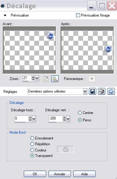 Effets d'image , Décalage avec les mêmes réglages que précédemment