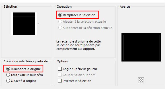 Cliquez sur le petit carré Sélection personnalisée et appliquez les réglages suivants sur le calque Raster 2