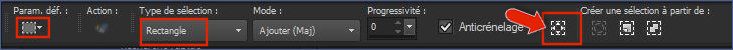 Cliquez sur le petit carré Sélection personnalisée et appliquez les réglages suivants sur le calque Raster 5