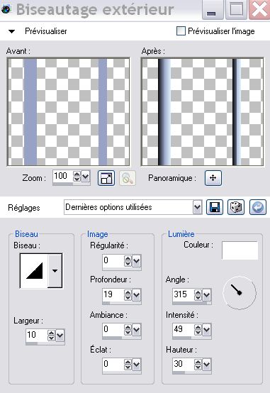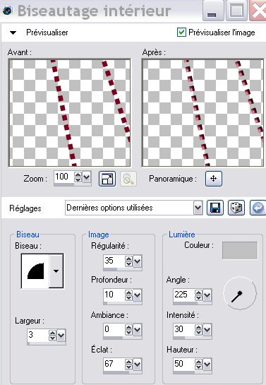 27- Effets, Effets 3D, et Biseautage intérieur, mêmes réglages qu'à la section 24