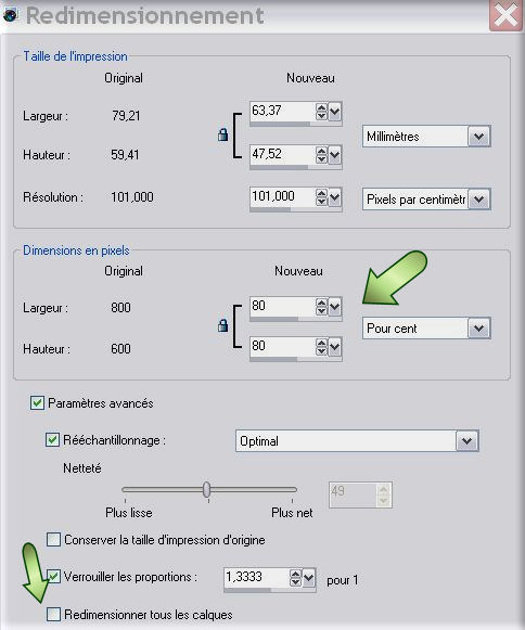 Redimensionner à 80 % (Redimensionner tous les calques non coché !)