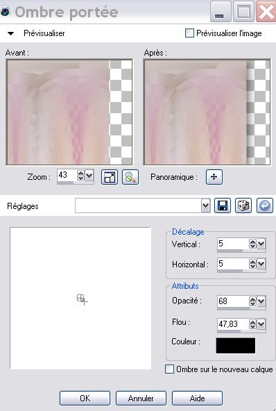 Effets, effets 3D, Ombre portée 0/0/ 50/20