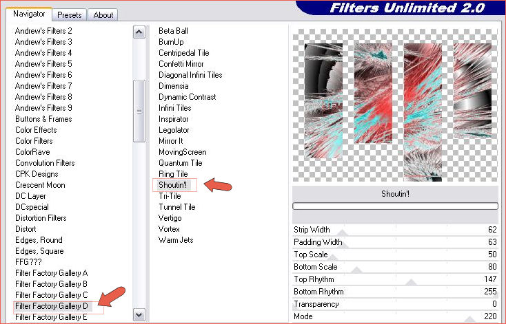 4- Calques, Dupliquer Image, Miroir 5- Effets, Filter factory gallery D, Shoutin'!
