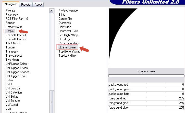 Appliquer le Preset : shadowflamant, de la même façon que précedemment 20- Calques, Nouveau calque -Raster 3 Effets, Dragon Fly, Sinedots II