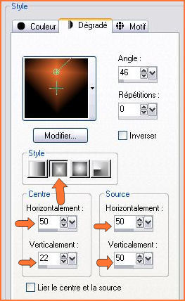 Preparez un dégradé Carré, avant-plan #ff7432 et Arrière-plan #000000